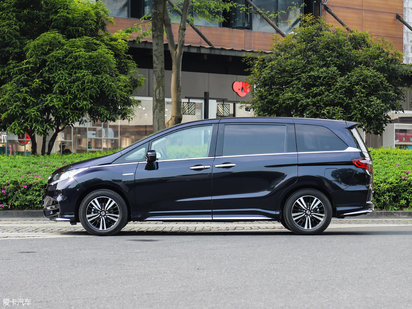 除此之外,奥德赛锐混动还通过配备前后包围、侧裙、车身四周的镀铬装饰条、尾灯罩边缘上的蓝色镀膜以及混动车型专属双色铝合金轮圈,来彰显混动版车型的身份,也更便于我们区分奥德赛锐混动与汽油版车型在造型方面的不同。总体来看,虽然叫混动版车型,不过移植了日版车型造型的奥德赛锐混动整体造型看上去十分运动,充满了战斗力。